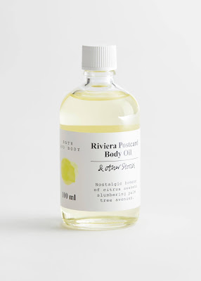 Hittade en nyinkommen body oil från & Other Stories som jag ska testa, "Riviera Postcard" med doft av bärnsten, vanilj och blommor, min hud har för jämnan en magiskt vacker och ren hudton, då jag är noggrann med att hålla mitt inre rent plus vårda hyn med bra hudvård i form av peeling och återfuktning med lotions och body oils och så har jag naturligt ett fint pigment. I vår och i sommar kommer jag ha håret utsläppt antingen blankt eller vågigt så ofta som möjligt!